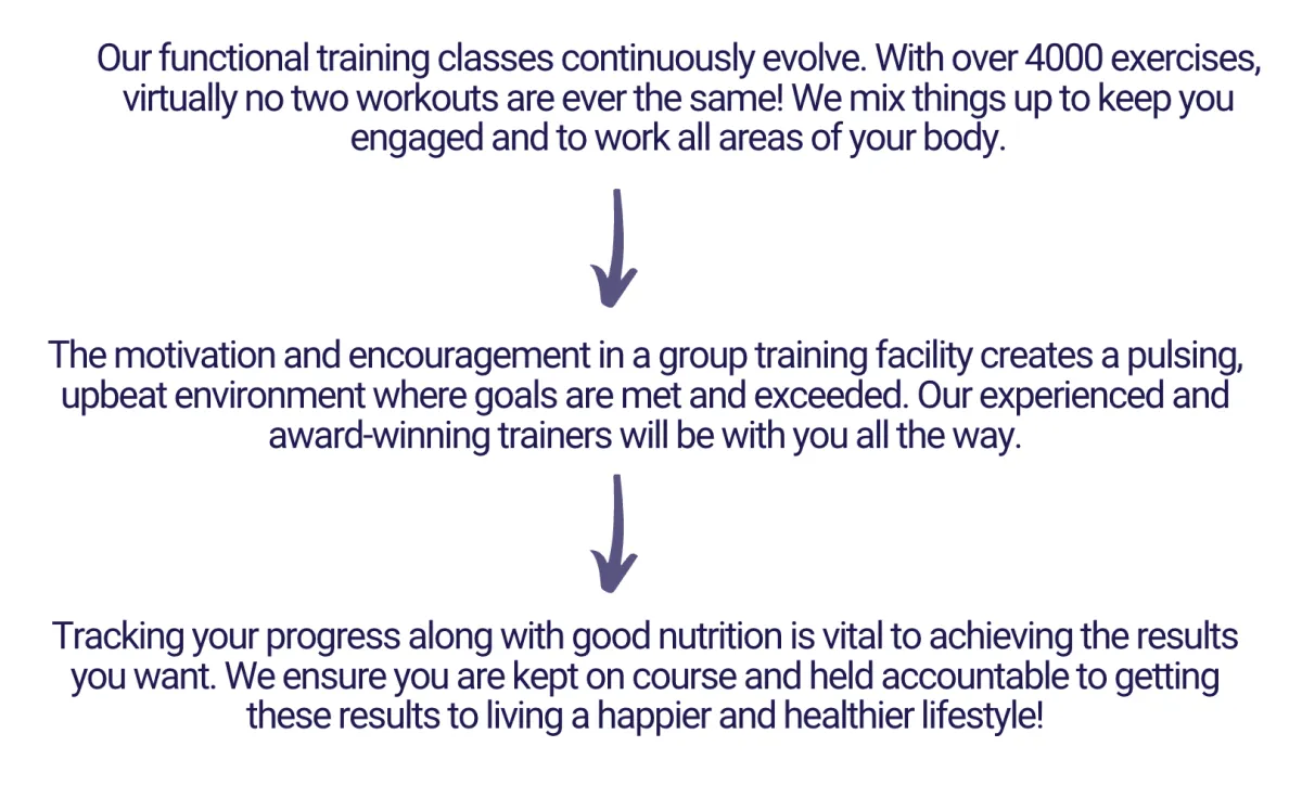 We're a community who are focused on you - hitting your fitness and lifestyle goals by combining elements of High-Intensity Interval Training (HIIT), Circuit Training, and Functional Training in 45-minute classes (just 3% of your day!)